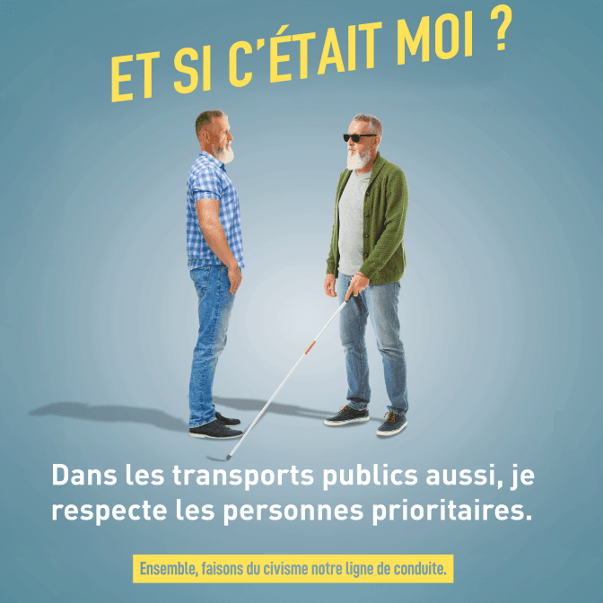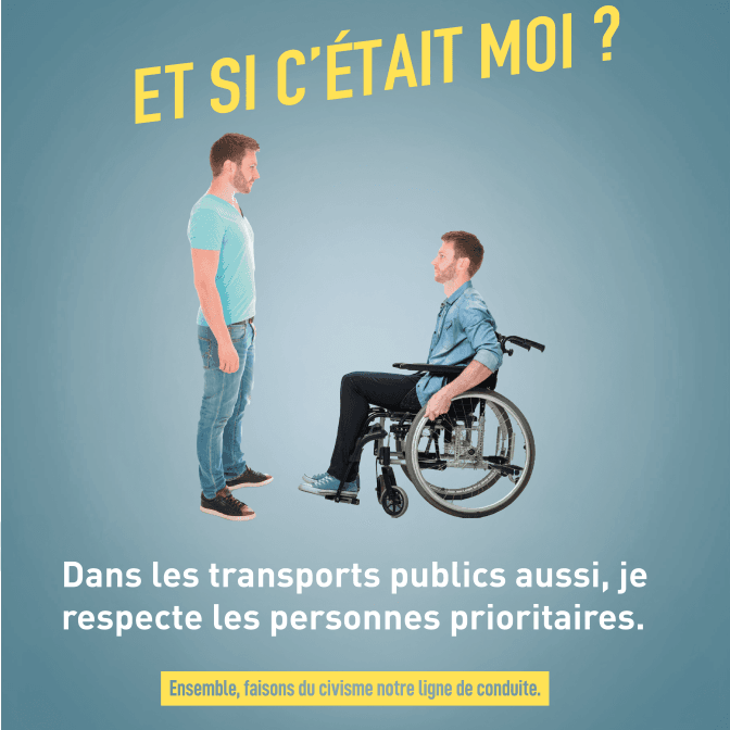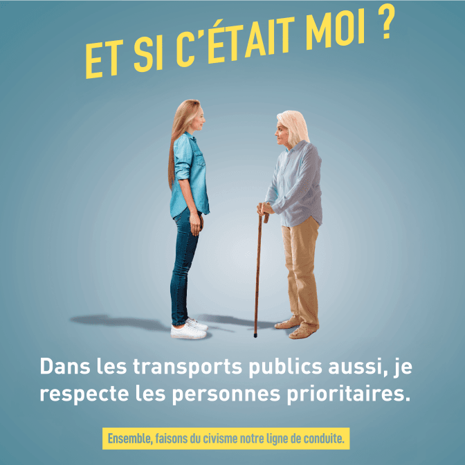 Dans les transports publics, aussi je respecte les personnes prioritaires.