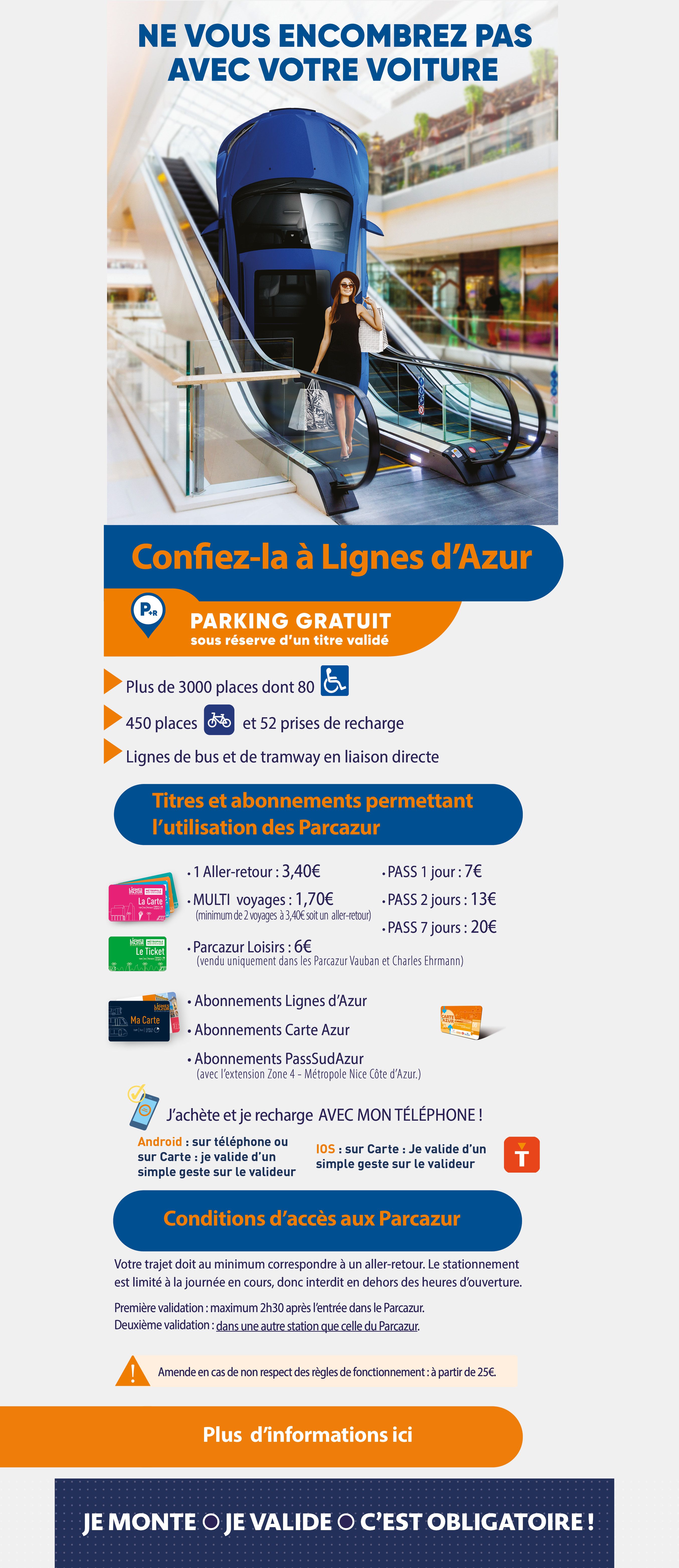 Ce titre permet d’accéder à l’ensemble des Parcazur sans circulation sur le réseau Lignes d’Azur.